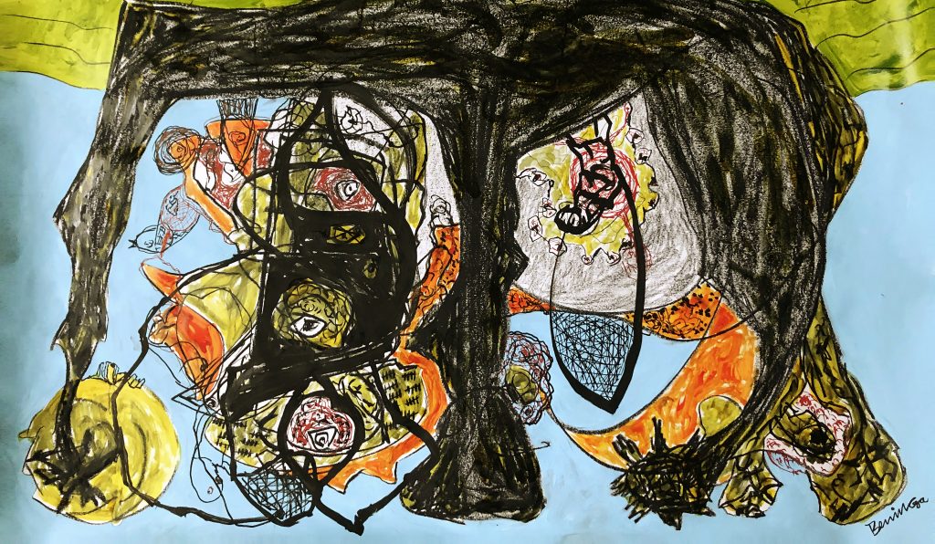 Der verborgene Tag Acryl, Tusche, Tinte und Graffiti auf Papier 58 × 99,6 cm 2018 980 €