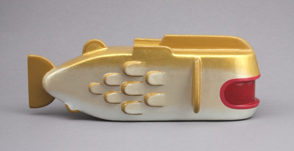 Fish IV Pappmaché, Acryl und Lack 34 × 14 × 15 cm 2023 650 €